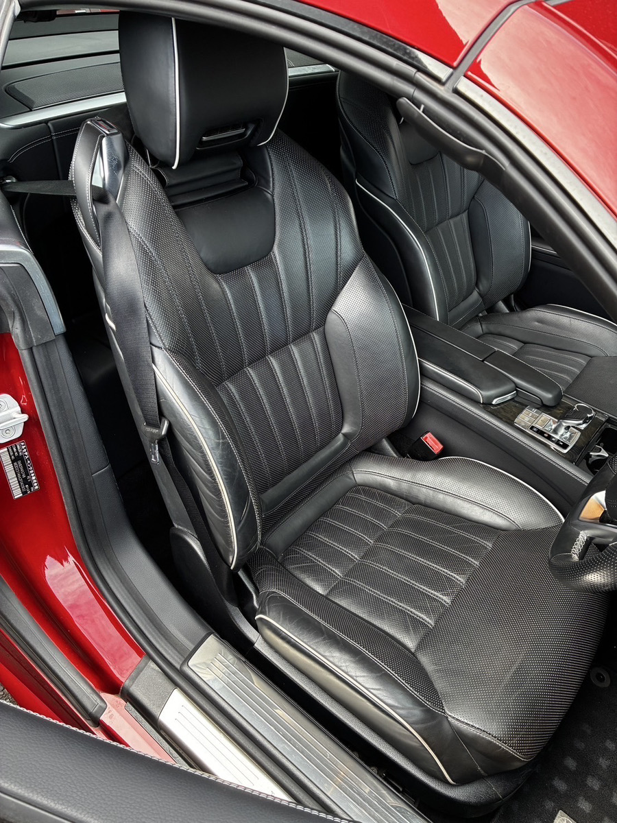 運転席のシートは、乗り降りの際にどうしても擦れてしまうサイドサポート部分にダメージが出やすく、革のシワやテカリ、部分的な色あせが目立っていました。